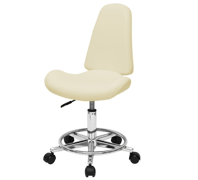 Стілець для майстра модель 827 бежевого кольору потішить косметолога широким сидінням у формі пелюстки та високою спинкою, яка максимально підтримує спину вздовж хребта.